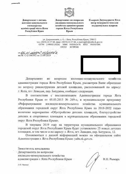 айГражданинОтправлено 12.09.2019: "Администрация города Ялты республики Крым"