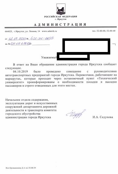 айГражданинОтправлено 08.10.2019: "Администрация города Иркутска"