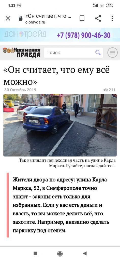 Татьяна ЕвгеноваО нашей проблеме вышла статья в "Крымской правде" от 30.10.19 под названием "Он считает, что ему все можно". Вот ссылка на нее https://c-pravda.ru/news/2019-10-30/on-schitaet--chto-emu-vsjo-mozhno