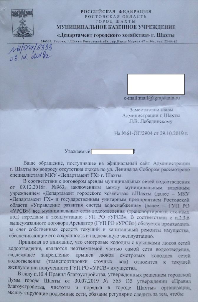 айГражданинОтправлено 29.10.2019: "Администрация города Шахты Ростовской области"