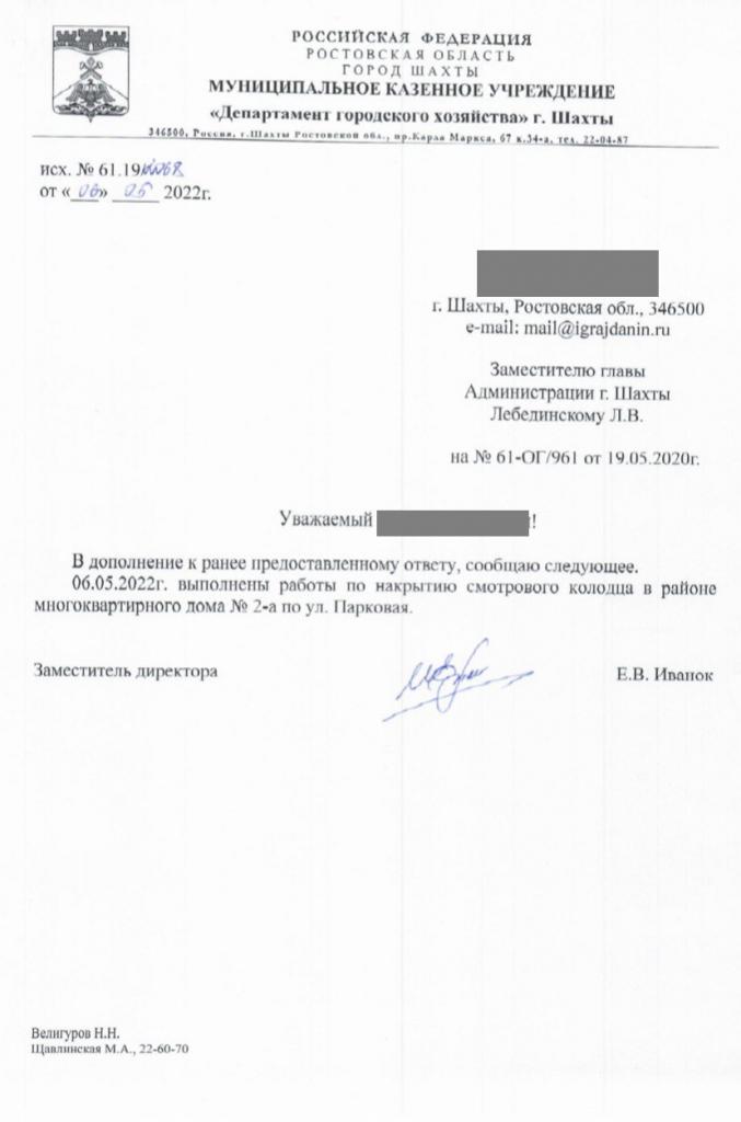 айГражданинОтправлено 18.05.2020: "Администрация города Шахты Ростовской области"