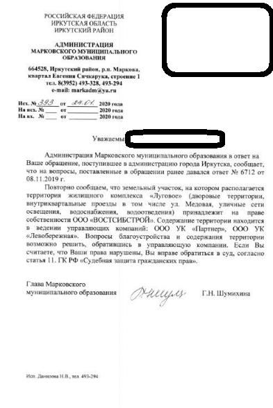 айГражданинОтправлено 21.06.2020: "Администрация Иркутского районного муниципального образования"