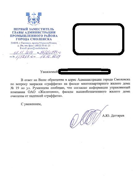 айГражданинОтправлено 01.11.2019: "Администрация города Смоленска"