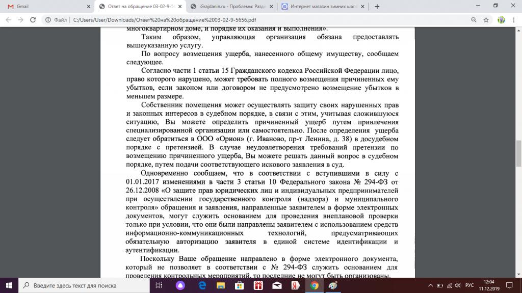 айГражданинОтправлено 11.11.2019: "Администрация города Иваново"