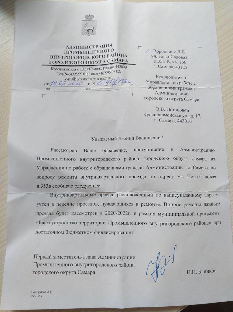 айГражданинОтправлено 05.02.2020: "Администрация городского округа Самара"