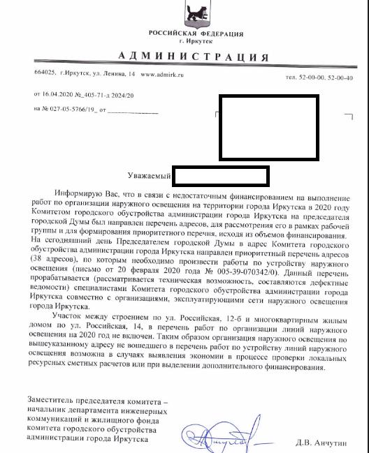 айГражданинОтправлено 10.01.2020: "Администрация города Иркутска"