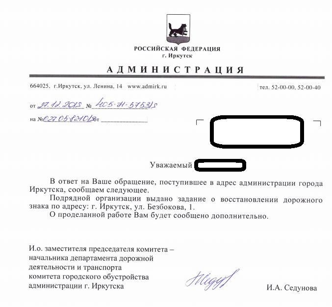 айГражданинОтправлено 03.12.2019: "Администрация города Иркутска"