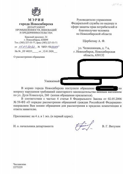 айГражданинОтправлено 24.01.2020: "Управление Федеральной службы по надзору в сфере защиты прав потребителей и благополучия человека по Новосибирской области"