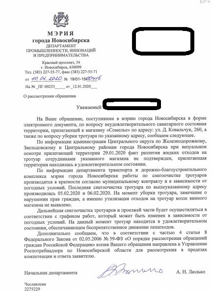 айГражданинОтправлено 10.01.2020: "Мэрия (администрация) города Новосибирск"