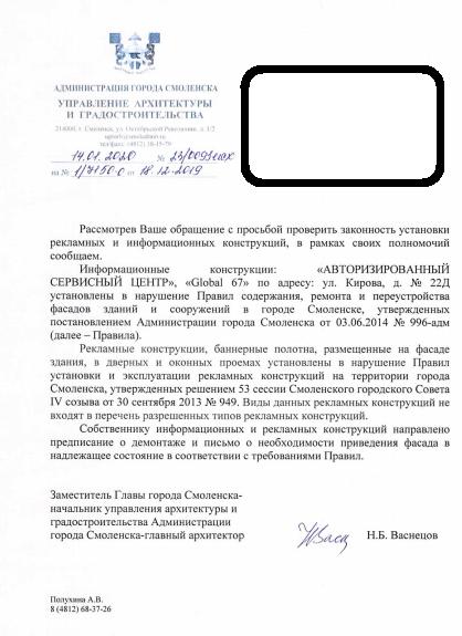 айГражданинОтправлено 18.12.2019: "Администрация города Смоленска"