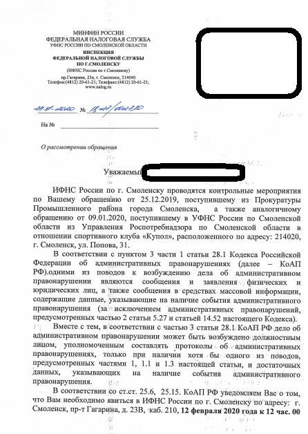 Максим ПрокоповПрошу перенаправить обращение в налоговую инспекцию города Смоленска
