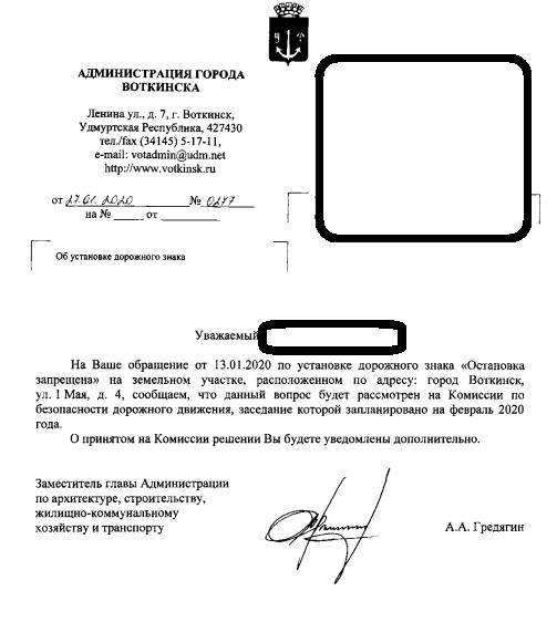 айГражданинОтправлено 13.01.2020: "Администрация города Воткинска"