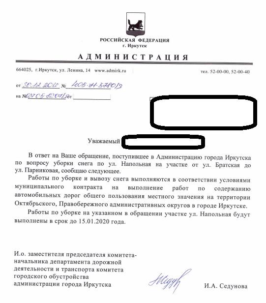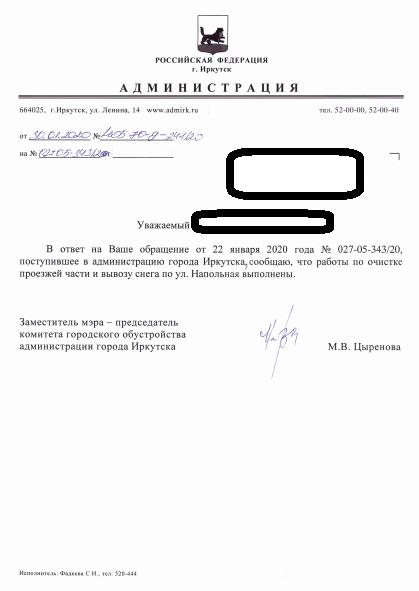 айГражданинОтправлено 21.01.2020: "Администрация города Иркутска"