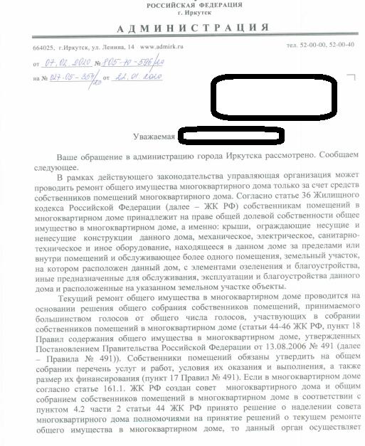 Отправлено 21.01.2020: "Администрация города Иркутска"