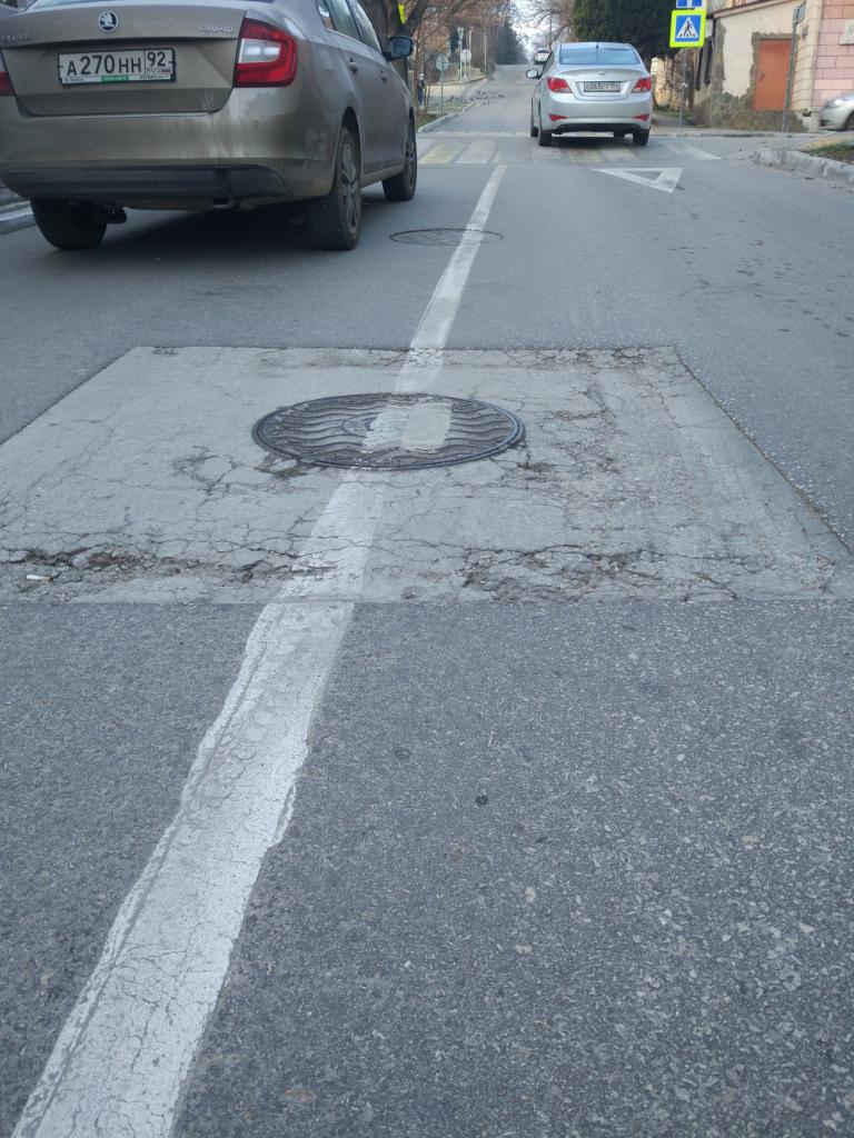 Просела площадка с люком. И образовалась как яма, при этом ее сразу не видно. Опасно для автомобилей.