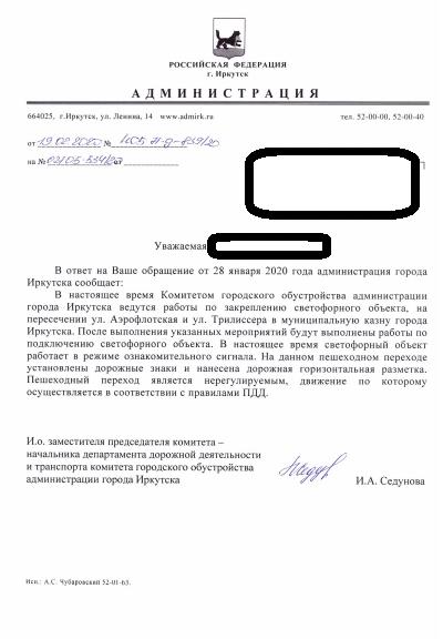 айГражданинОтправлено 28.01.2020: "Администрация города Иркутска"