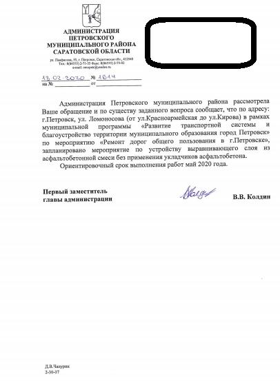 айГражданинОтправлено 14.02.2020: "Администрация Петровского муниципального района Саратовской области"