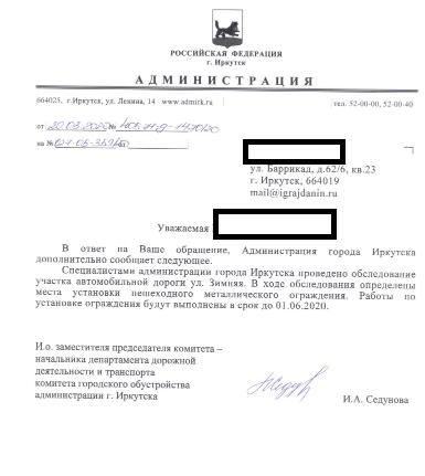 айГражданинОтправлено 14.02.2020: "Администрация города Иркутска"