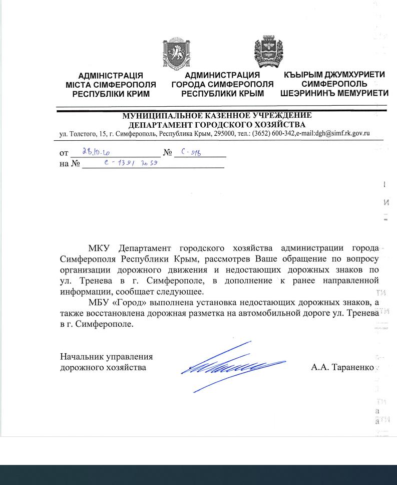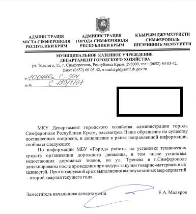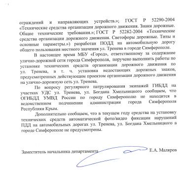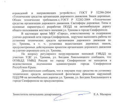 Кроме того в ответе не указана причина отсутствия знаков - ошибки в изначально утверждённой "схеме организации дорожного движения" на данном участке - или нарушения со стороны исполнителей, не установивших знаки, предусмотренные схемой.