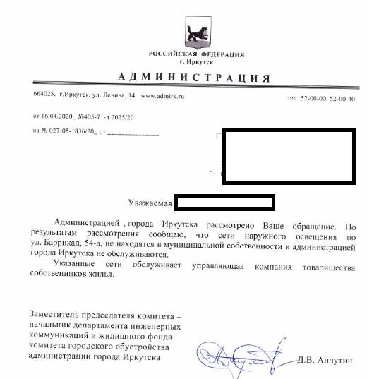айГражданинОтправлено 18.02.2020: "Администрация города Иркутска"