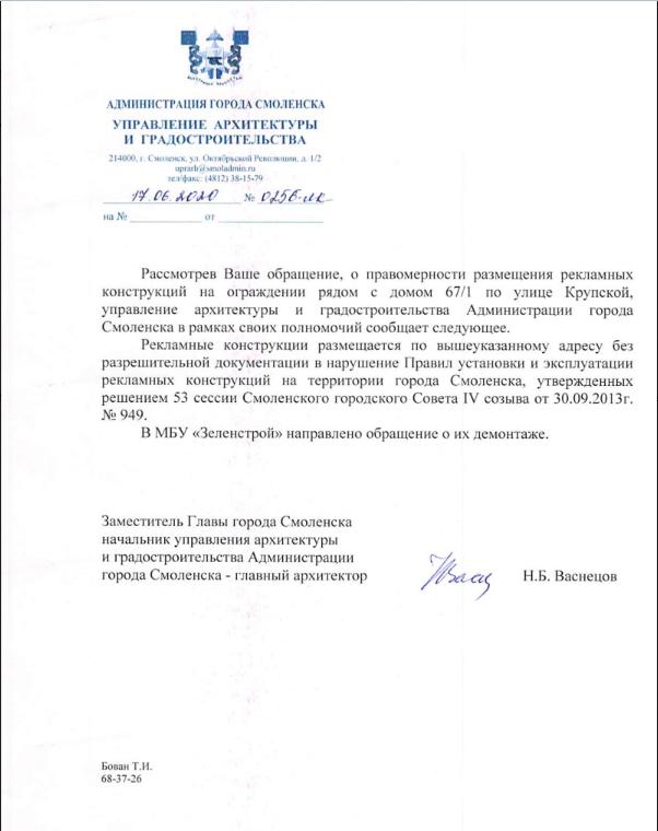 айГражданинОтправлено 20.06.2020: "Администрация города Смоленска"