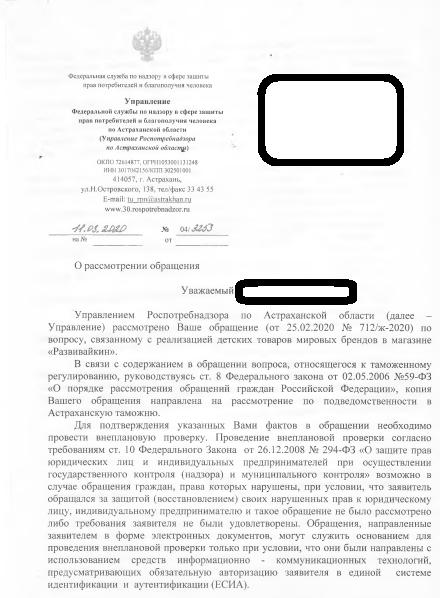айГражданинОтправлено 25.02.2020: "Управление Федеральной службы по надзору в сфере защиты прав потребителей и благополучия человека по Астраханской области"