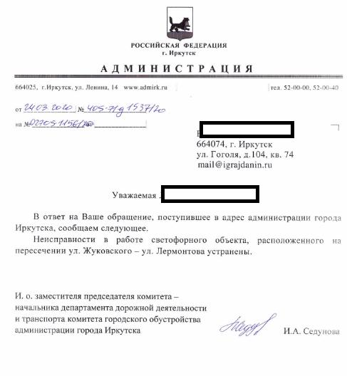 айГражданинОтправлено 25.02.2020: "Администрация города Иркутска"