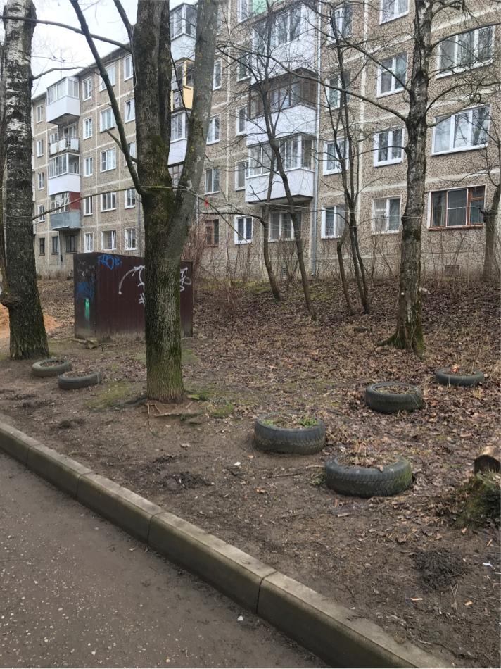 На основании ответа от УЖКХ города Смоленска и разъяснения для всех УК , ТСЖ, ЖСК , о недопустимости размещения покрышек на дворовой территории МКД прошу выполнить очистку двора дома 16 по улице Ломоносова ( на фото) от старых покрышек.