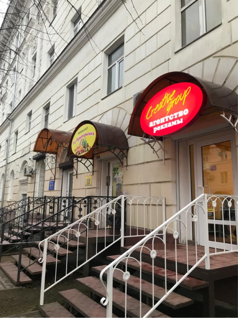 Прошу демонтировать незаконно установленные металические козырьки на входом в магазины ( на фото) по адресу - улица Пржевальского дом 9/27