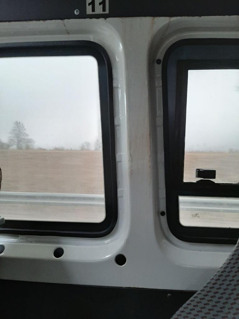 Внутри по стенкам салона течёт вода, видны следы ржавчины и мокрая обшивка.