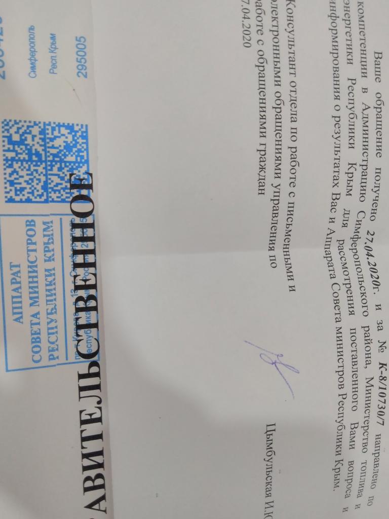 Эльнур КурталиевАппарат Совета министров Республики Крым уведомил что мое обращение перенаправлено в Администрацию Симферопольского района