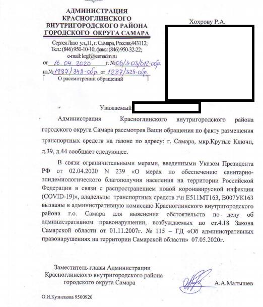 айГражданинОтправлено 24.03.2020: "Администрация Красноглинского района г. Самары"