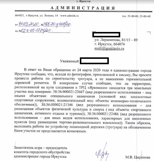 айГражданинОтправлено 24.03.2020: "Администрация города Иркутска"