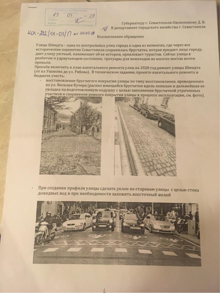 KlochkoПросьба переслать в департамент транспорта и развития дорожно-транспортной инфраструктуры, а также на имя ВРИО губернатора Разможаева МВ, тк пришел ответ, что департамент городского хозяйства не занимается этим вопросом. При этом ДГХ все перевернул с ног на голову, ответив, что принято к сведению и передал дальше необходимость асфальтирования ул Шмидта, при том, что в обращении четко просят сохранить брусчатку. Видимо департамент читает обращения так, как удобно им, а именно — уничтожить и закатать в асфальт все историческое.