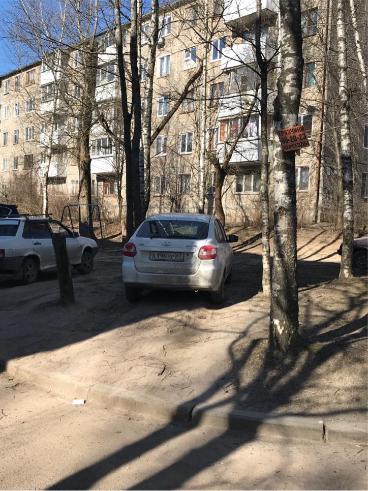 Место нарушения- зелёная зона во дворе дома 16А по улице Ломоносова