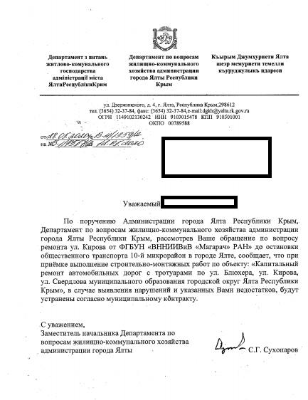 Виталий варманНе предоставили нормального ответа. Ошиблись с местом жалобы и приравняли к неизвестной коллективной жалобе Симферопольского Района. Жалоба была по городе Ялта Кирова 35.