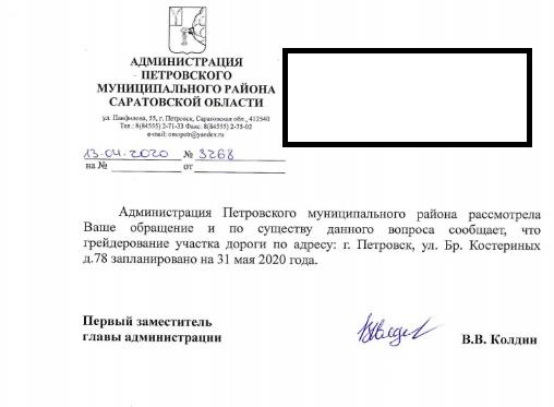 айГражданинОтправлено 21.04.2020: "Администрация муниципального образования "Город Саратов""