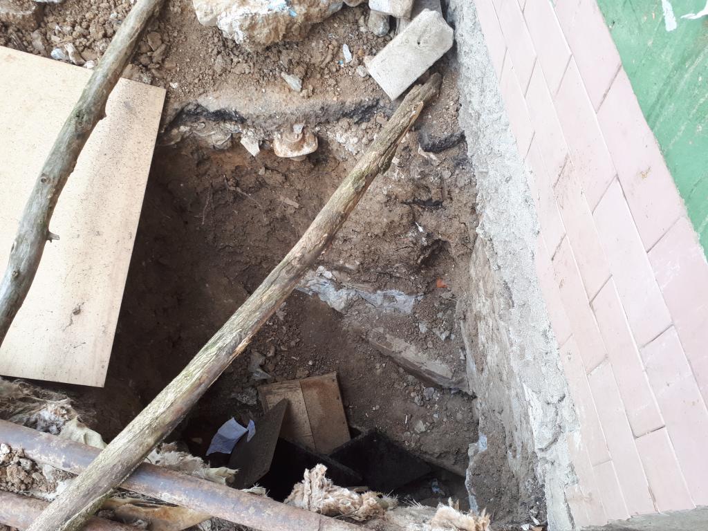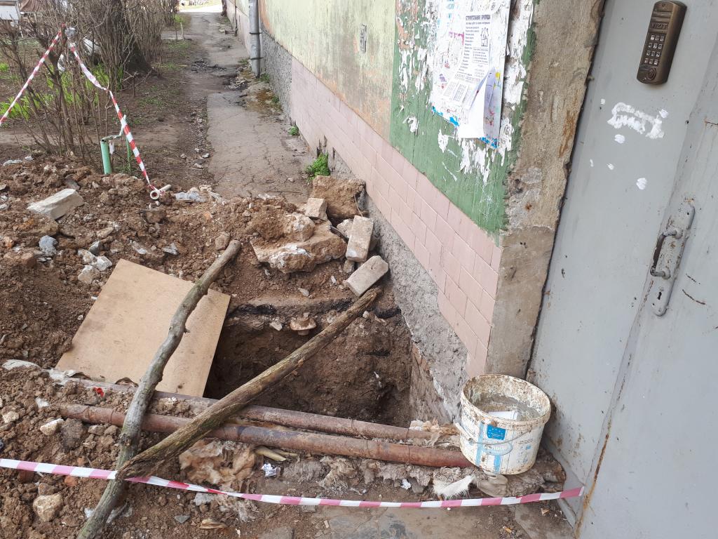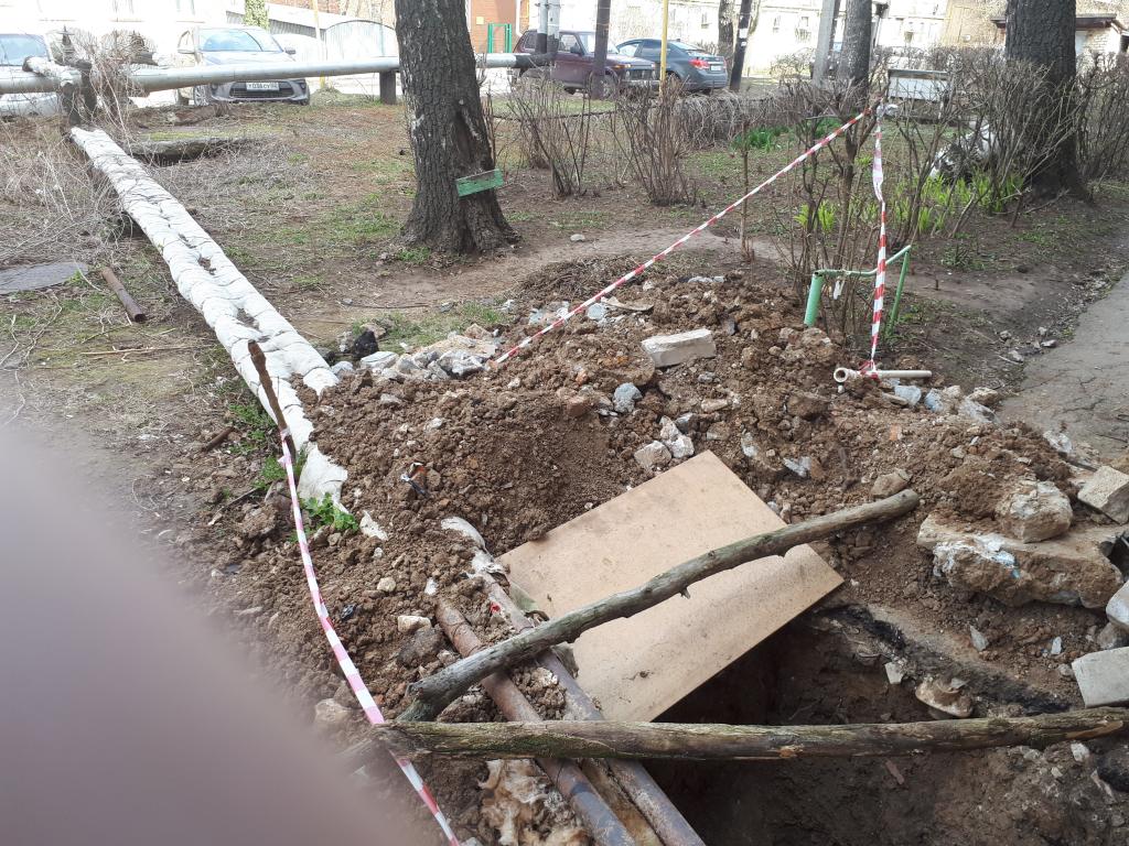 Яма у подъезда! Скоро месяц как у нас вырыли эту яму. Я понимаю, ремонт, замена труб, но в нашем подьезде уже все всё сделали, а яму не закапыют. От неё не только грязь но и реальная опастность. Из огорождений, только лента на фото и всё! Дорогая администрация, поторопите ваших сотрудником, дабы избежать несчастных случаев. Спасибо!