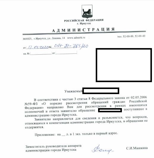 айГражданинОтправлено 17.04.2020: "Администрация города Иркутска"