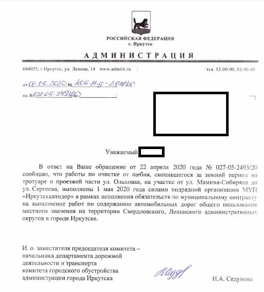 айГражданинОтправлено 28.04.2020: "Администрация города Иркутска"