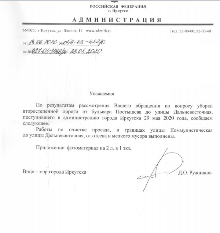 айГражданинОтправлено 28.04.2020: "Администрация города Иркутска"