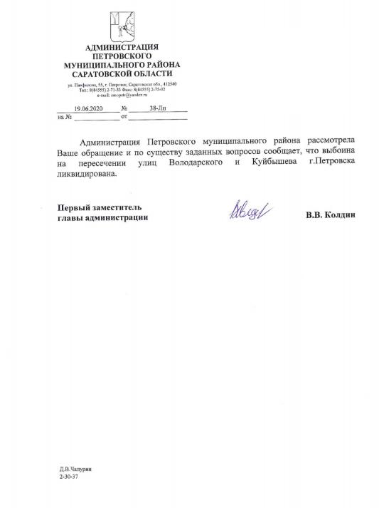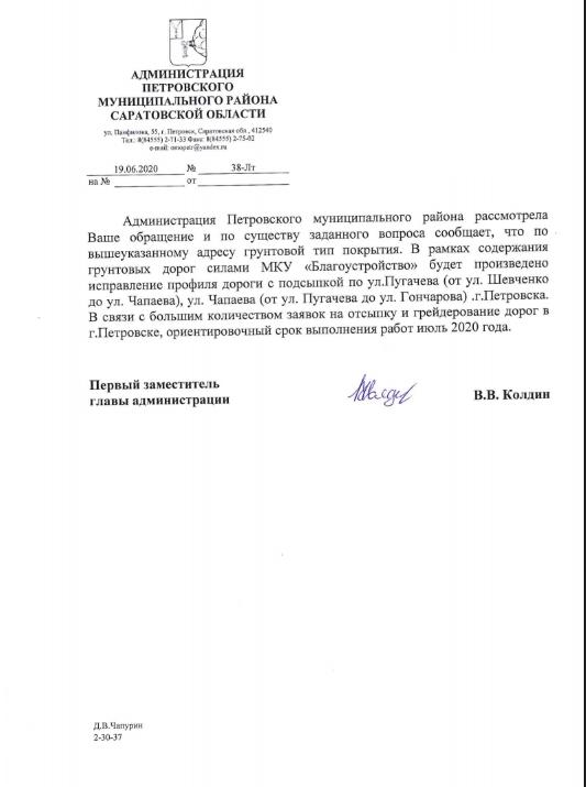 айГражданинОтправлено 18.06.2020: "Администрация Петровского муниципального района Саратовской области"