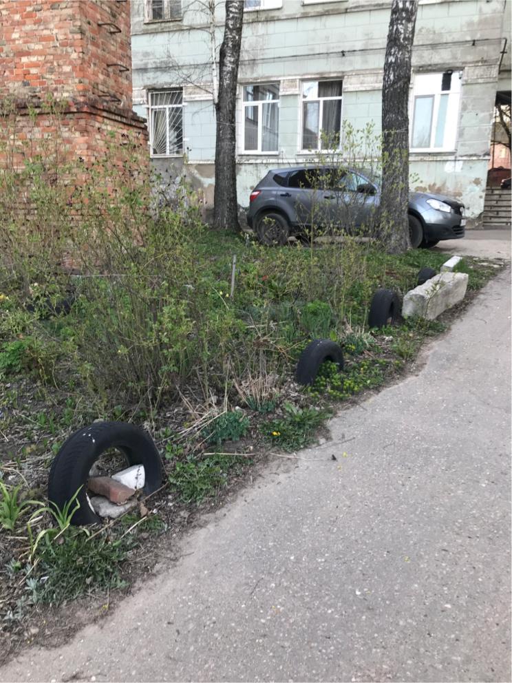 Прошу вывезти старые покрышки из двора дома 5А по Запольному переулку ( на фото)