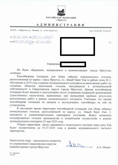 айГражданинОтправлено 13.05.2020: "Администрация города Иркутска"
