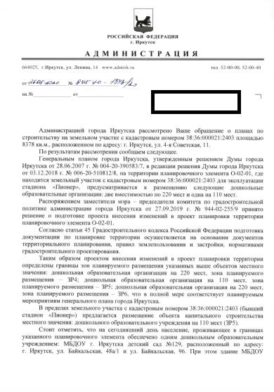 айГражданинОтправлено 13.05.2020: "Администрация города Иркутска"