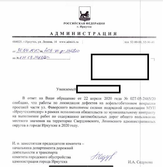 айГражданинОтправлено 18.05.2020: "Администрация города Иркутска"