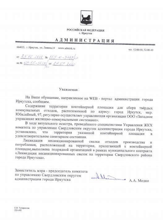 айГражданинОтправлено 28.05.2020: "Администрация города Иркутска"