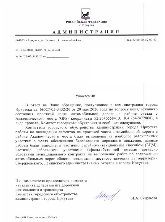 айГражданинОтправлено 21.06.2020: "Администрация города Иркутска"