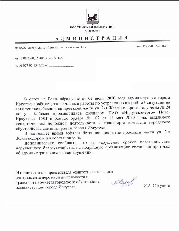 айГражданинОтправлено 29.05.2020: "Администрация города Иркутска"