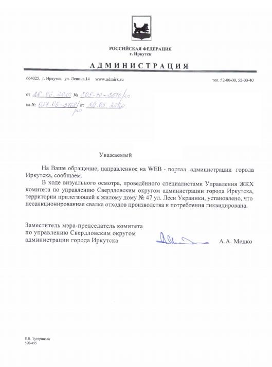 айГражданинОтправлено 28.05.2020: "Администрация города Иркутска"